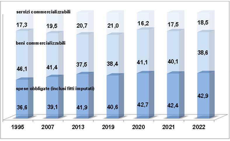 Tra consumi e spese obbligate c’è da sempre, com’è ovvio, un rapporto molto stretto. Affitti, bollette e assicurazioni varie per intenderci, hanno un peso importante nell’economia delle famiglie e determinano insieme all’inflazione l’andamento dei consumi. L‘analisi dell’Ufficio Studi di Confcommercio sulle spese obbligate delle famiglie tra il 1995 e il 2022 (link pdf) fotografa perfettamente questo tipo di situazione: nel 2022 per esempio, il desiderio di ritorno alla normalità sta sostenendo, in questa prima parte dell’anno, i consumi delle famiglie con alcuni comparti in forte recupero, come il turismo e l’area della convivialità e del tempo libero, ma ci sono settori che ancora stentano, come l’automotive e l’abbigliamento.